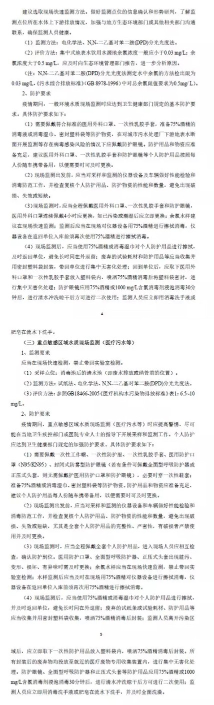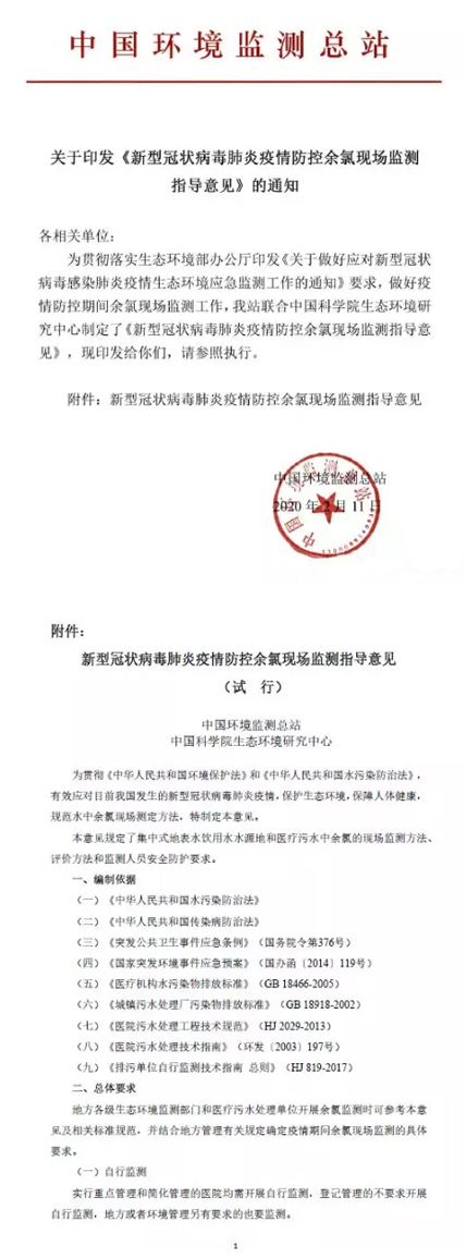 中國環境監測總站發布《新型冠狀病毒肺炎疫情防控余氯現場監測指導意見》